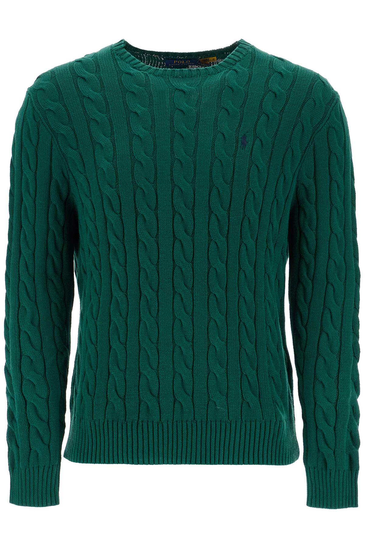This Polo Ralph Lauren crew neck sweater is made of pure cotton cable knit. It features the iconic Pony logo embroidered in contrasting color on the chest, and ribbed collar, cuffs, and hem. The fit is regular with low-set sleeves. The model is 182 cm tall and wears a size M.