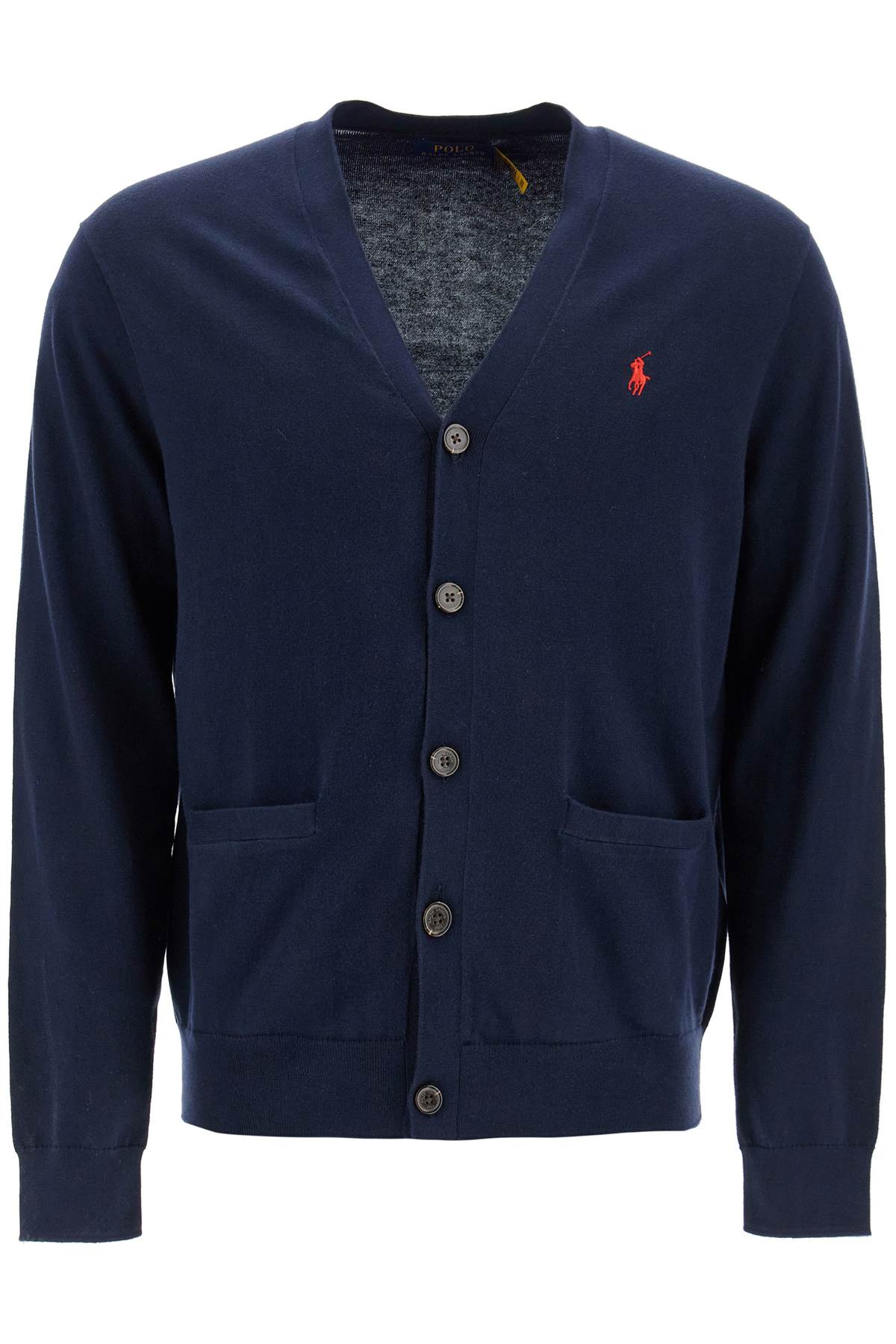 Made from soft pure cotton yarn, this Polo Ralph Lauren cardigan has a regular fit with a V-neckline and five-button closure. It features the exclusive Pony logo embroidered on the chest, two front flap pockets, and ribbed trim detailing. The model is 182 cm tall and wears a size M.