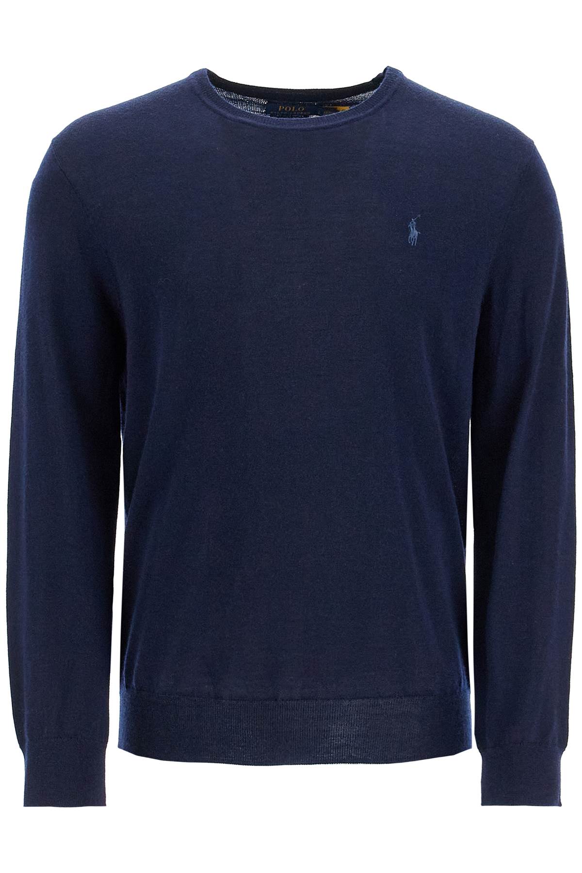 This Polo Ralph Lauren crew neck sweater is made of lightweight pure wool knit, featuring the iconic contrast embroidered pony on the chest and ribbed edges. Regular fit. The model is 182 cm tall and wears size L.
