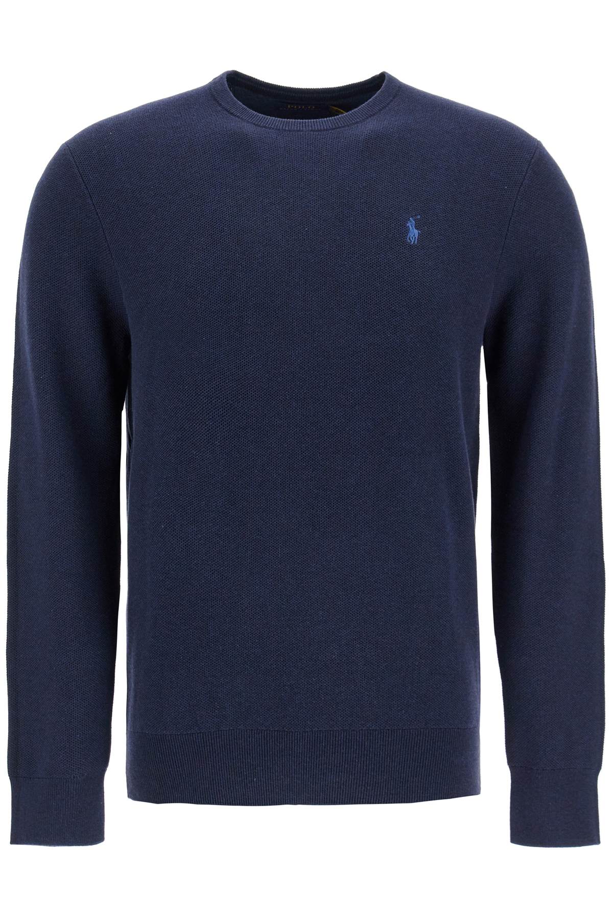 This Polo Ralph Lauren crew neck pullover is made from soft, pure cotton yarn with a textured weave. It has a regular fit and features the iconic Pony logo embroidered on the chest, as well as ribbed edges. The model is 182 cm tall and wears a size M.